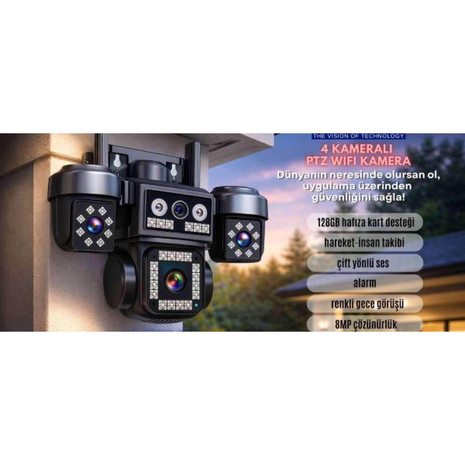 4 kameralı 3 ptz li wifi kamera da her biri 2 mp çözünürlükte 4 adet lens bulunmaktadır.
